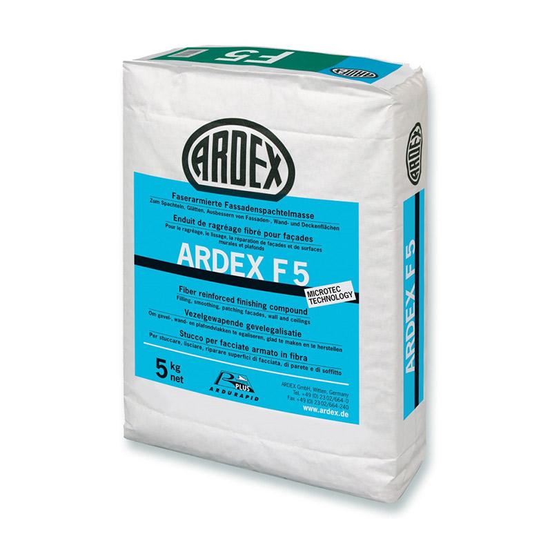Ardex F 5 er smidig at arbejde med og let at påføre, og spartelmassen synker ikke, når den tørrer op. Spartlingsproduktet er hvidt og fås i 5 kg. Posen rækker ca. 5,5 kvm.