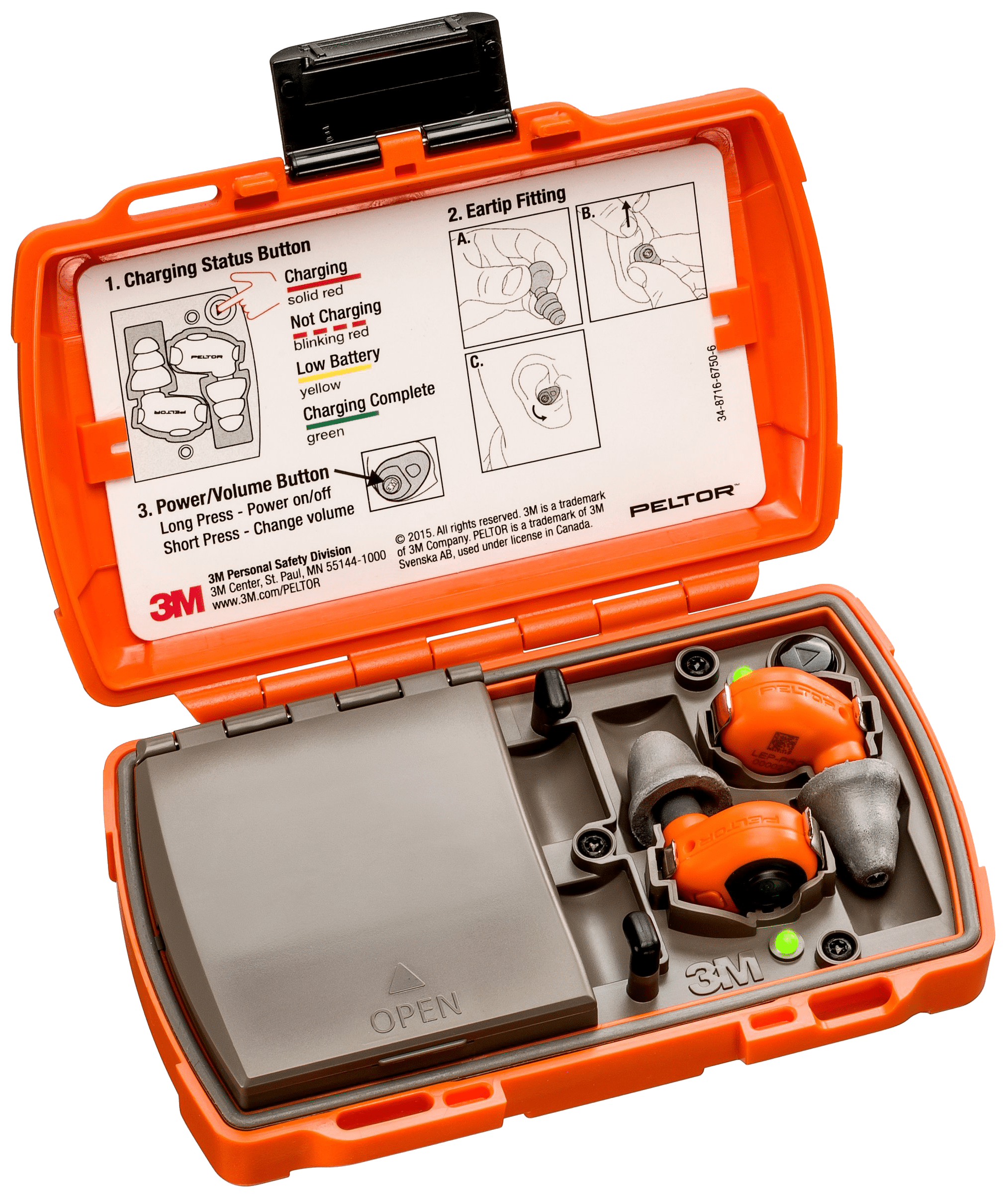 Peltor elektroniske in-ear høreværn LEP-200 EU OR. Niveauafhængig øreprop som leveres parvis med en slidstærk boks til opladning og et udvalg af ørepropper, snor, vindhætter og USB-kabel til opladning. Beskytter hørelsen og forbedrer situationsfornemmelse