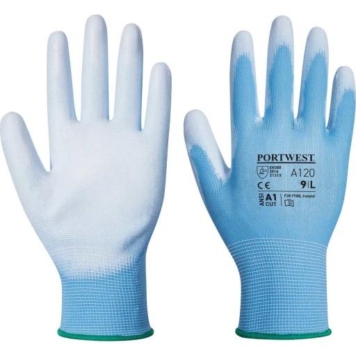 Slidstærke arbejdshandsker til præcisionsopgaver Her får du et par blå arbejdshandsker, der er perfekte til dig, der arbejder med både grove og mere nøjagtige opgaver. Handskerne er lavet i polyester og polyuretan, hvilket gør dem både fleksible og holdba