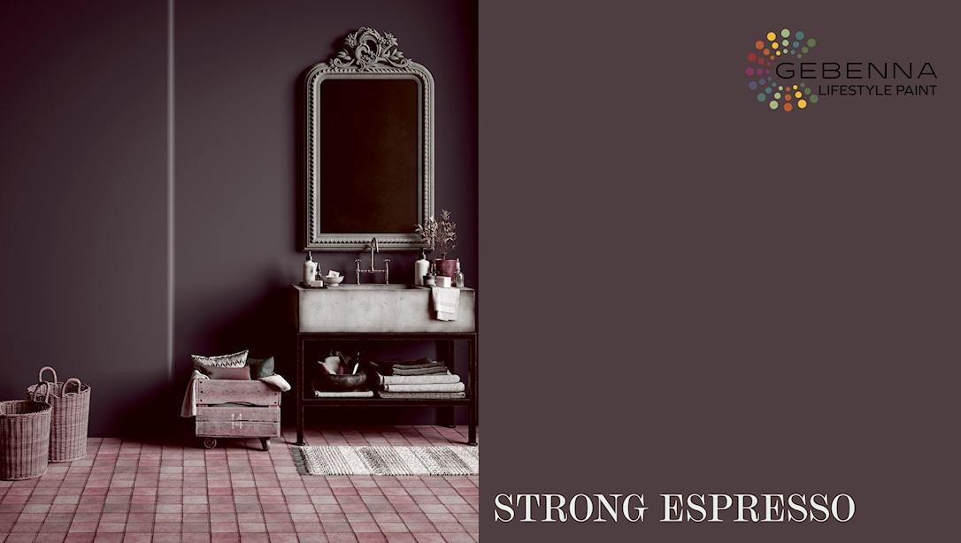 Strong espresso er en mørk, brun lilla blommefarvet maling som skaber et dramatisk men eksklusivt look. Farven består primært af røde farver, men indeholder både grønne og blå undertoner.